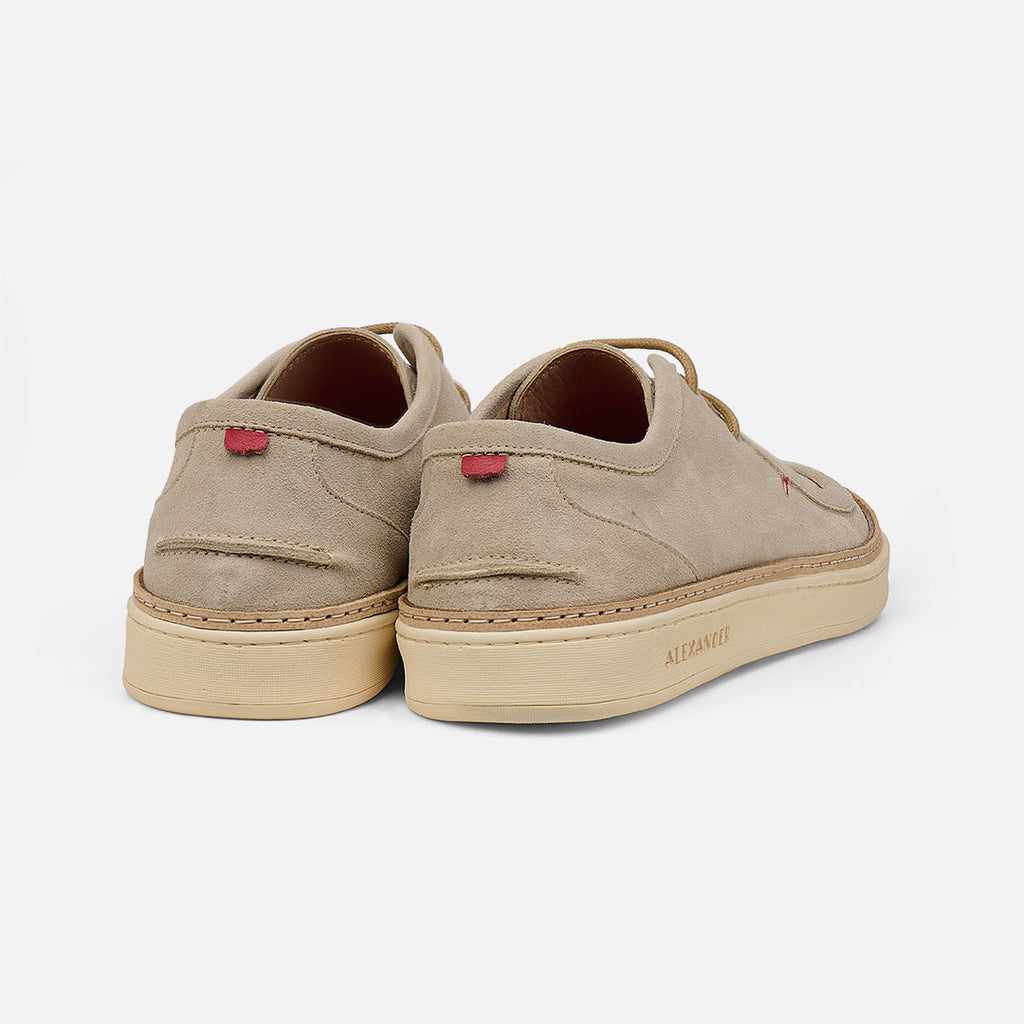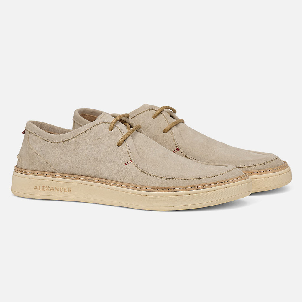 Mediterranea è una pedula di colore beige e incarna due valori fondamentali per Alexander 1910: stile e comodità. Si adatta perfettamente alle situazioni formali grazie alla linea classica e allo scamosciato che donano eleganza alla calzatura ed ha una naturale inclinatura anche per le circostanze informali e pratiche, grazie alla speciale suola in latte di Lactae Hevea®.