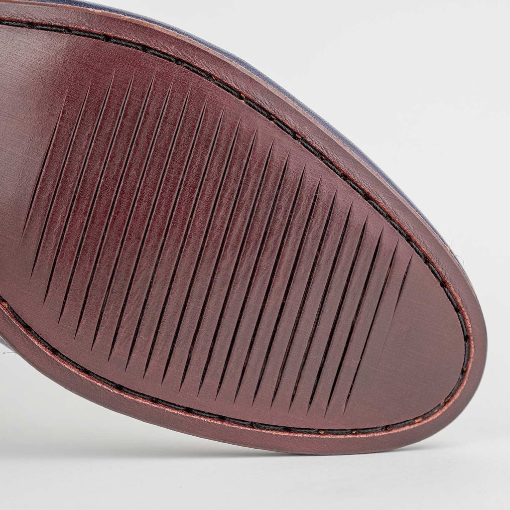 Suola in pelle lavorazione a sacchetto con lamelle antiscivolo